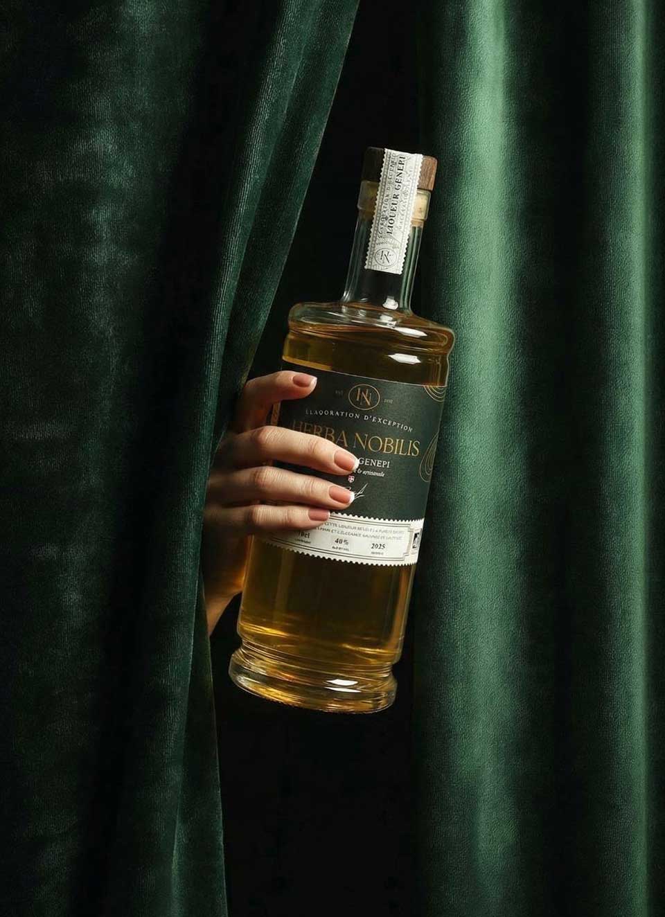 L’expérience Herba Nobilis se prolonge dans le design de la bouteille, véritable objet de désir. Son étiquette vert profond, rehaussée de dorures, évoque l’altitude, la rareté et l’élégance intemporelle du génépi. Chaque détail a été pensé pour faire de cette bouteille un futur emblème des Alpes, tout en s’inscrivant dans les codes esthétiques des grandes maisons de spiritueux. « Nous nous sommes inspirés du raffinement des whiskies ou des cognacs, tout en restant fidèles à nos racines », souligne Florent Chouzy. Herba Nobilis est née pour s’imposer comme une marque forte, porteuse de l’identité alpine.