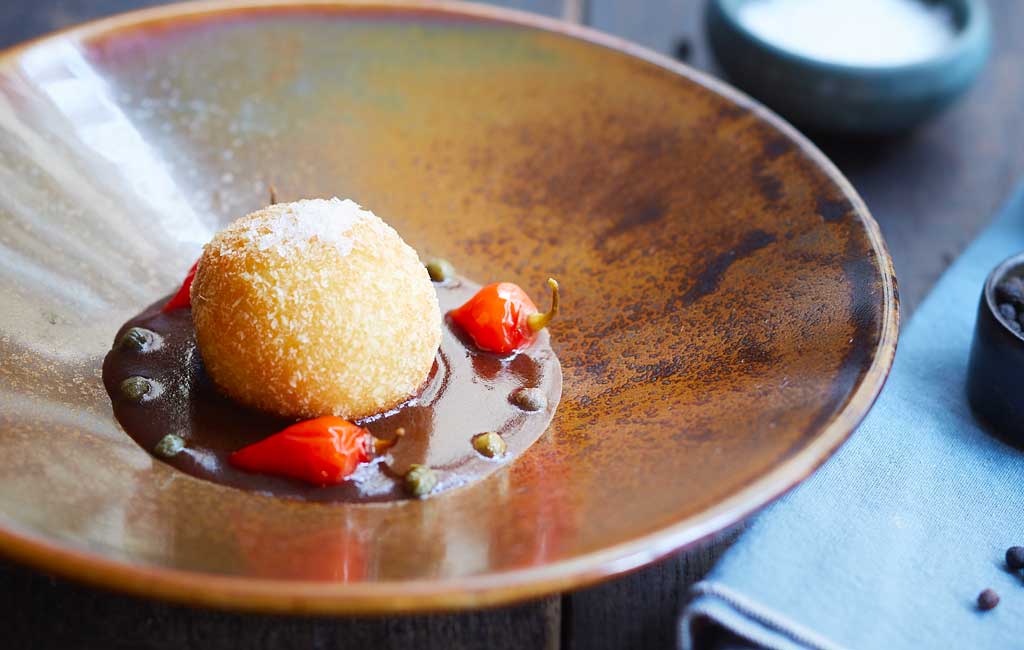Un cromesquis goûteux relevé aux câpres et piment doux